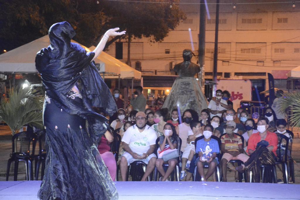 A noite seguiu com o espetáculo de dança oriental de Flávia Kahyna, intitulado de ‘A Arte da Dança do Ventre’. Quem estava sentado, foi praticamente obrigado a levantar na coerção artística que estava em cena.