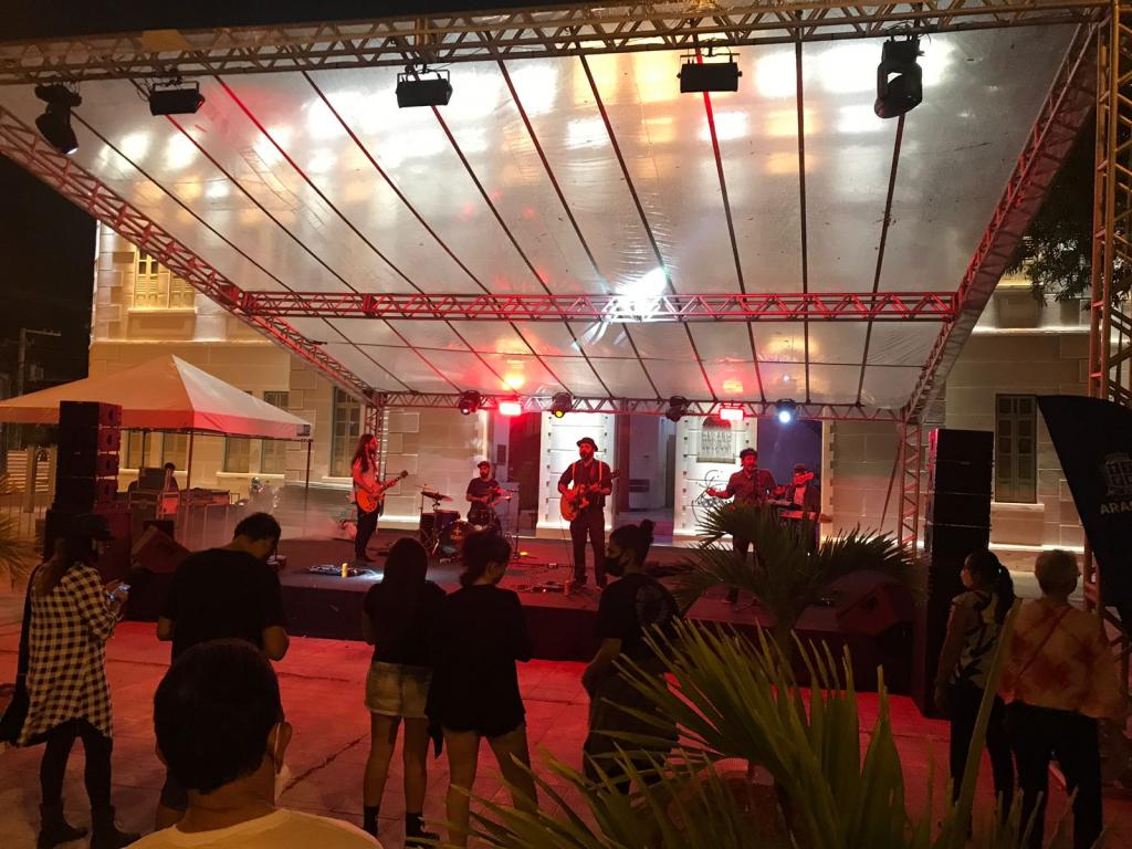 Em cima da Praça General Valadão, sob o encantador jogo de luzes do Centro Cultural, foi montado um palco que será o elo entre artistas e público, ao longo das próximas quatro semanas de realização do Festival, fortalecendo a chama de retomada cultural – que acontece graças ao avanço da imunização contra a covid-19 e queda no número de casos e óbitos da doença na capital sergipana.