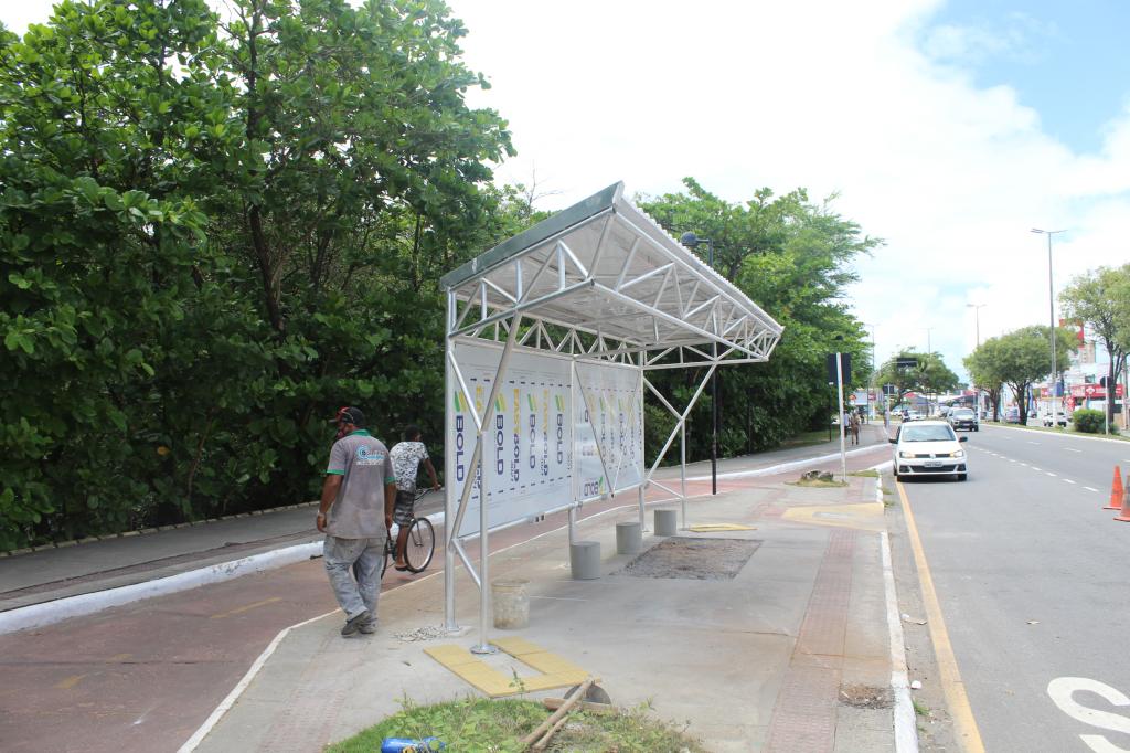 O trabalho segue no sentido Sul/Centro, partindo da Atalaia até chegar às proximidades do Mercado Central. Ao todo serão implantados 147 abrigos mais modernos e seguros, localizados nos corredores de transporte Beira Mar, Centro/Jardins e Augusto Franco. Após fixação das estruturas em alumínio, serão instalados totens, telhado termo acústico, bancos em concreto e acessibilidade.