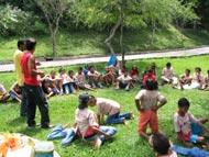 Crianças e adolescentes atendidos pela Secretaria Municipal de Assistência Social e Cidadania (Semasc) participaram hoje de uma gincana cultural organizada por educadores sociais do programa. Eles desenvolvem atividades variadas durante a jornada ampliada do Peti para incentivar este segmento populacional, que antes de serem atendidos pela Prefeitura de Aracaju, viviam em situação de risco, vulnerabilidade social e na condição de trabalho infantil. Durante o dia, eles tiveram a oportunidade de participar de variadas atividades ao ar livre onde entraram em contato direto com o meio ambiente e com os animais do zoológico. O educador social Marcos Cruz, que trabalha com os educandos do Peti há cerca de um ano, revela que o objetivo desta atividade é promover um resgate da cultura local através de brincadeiras, lendas e danças folclóricas. Hoje é a conclusão de um trabalho que realizamos durante o mês inteiro, que teve também como objetivo a valorização da família, diz o educador. Nós pedimos aos educandos que fossem buscar dentro de suas famílias as histórias e lendas folclóricas que seus pais ou avós conhecem para que eles pudessem, hoje, contá-las aos seus colegas, destacou. Uma das revelações no que diz respeito a contar histórias foi Wallace Conceição, 12 anos, que narrou a história de Enéas, um menino que passa uma noite numa casa de terror. Segundo Wallace, a história veio de um livro de sua mãe e, portanto, ele decidiu contá-la a seus amigos de forma divertida. Foi muito legal mesmo, todo mundo querendo saber o que ia acontecer depois e tentando adivinhar o final da história, conta, com entusiasmo, o adolescente que também participou do Reisado e das brincadeiras de roda. Isto aqui é um divertimento para nós, estou adorando. Vou brincar ainda muito, completa Wallace, animado. Tatiane da Conceição, 10 anos, é irmã de Wallace e também não esconde a animação. Estou gostando muito das brincadeiras e de passear neste parque. Adorei ver os animais, principalmente o pavão que é lindo, revela a jovem. Para Thaís Campos Oliveira, 14 anos, que não conhecia o Parque, a experiência do passeio foi maravilhosa. Eu estou achando tudo aqui muito lindo, e foi legal porque eu também participei das cantigas de roda, cantando a música do alecrim que eu acho muito bonita, revela a adolescente. A assistente social Rosabel Linhares revela que a gincana não é realmente uma competição. Ela explica que, na verdade, se trata de uma brincadeira na qual, ao final, serão distribuídos chocolates a todos. Além das atividades relacionadas com o folclore as crianças também puderam explorar o parque.