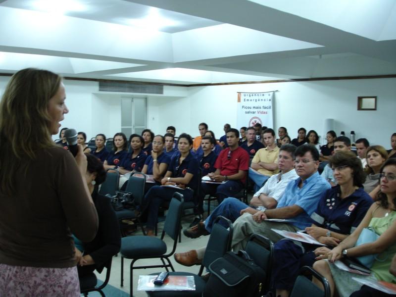 O I Curso de Regulação Médica das Urgências do Serviço de Atendimento Móvel de Urgência (SAMU 192 Aracaju), que acontece no Hotel Delmar, teve início na tarde de hoje, 31. O curso é uma realização da Secretaria Municipal de Saúde (SMS) em parceria com o Ministério da Saúde (MS). O curso é destinado a médicos reguladores, intervencionistas, telefonistas, auxiliares de regulação médica e rádio operadores com o objetivo de melhorar a qualidade da regulação médica (telemedicina) e o atendimento a distância, melhorando ainda mais a qualidade da comunicação dos profissionais do SAMU - médico regulador e a equipe que está compondo o atendimento. O secretário municipal de saúde, Rogério Carvalho, esteve presente na abertura e destacou a importância do SAMU. Hoje o serviço é reconhecido e serve de referência para todo país, frisou. O Ministério da Saúde está promovendo este curso em todos os municípios que fazem parte da rede SAMU. Para a coordenadora de enfermagem do serviço, Conceição Mendonça, este curso é de grande importância porque vem melhorar a qualidade do atendimento. A regulação médica é muito difícil. O médico fazer um atendimento médico a distância e orientar um paciente que você não está vendo é muito difícil e este curso vem justamente para aprimorarmos ainda mais os conhecimentos, afirmou. Na tarde de hoje, os funcionários do SAMU participaram da palestra O SUS e a Atenção às Urgências, com a representante do MS, a médica Zilda Barbosa. Em seguida Zilda Barbosa e Rosane Ciconette, falaram sobre Antecedentes Históricos e os Diferentes Modelos Assistências que se Estabeleceram no País, até a implantação do SUS; O SUS e Suas Diretrizes e Princípios; e o Papel das Normas Operacionais Básicas e A Norma Operacional da Assistência, na Implementação do SUS. Para fechar o primeiro dia do curso, a coordenadora geral de Urgência e Emergência do MS, Irani Ribeiro de Moura, fez um panorama da atenção às urgências no atual cenário do SUS e falou sobre a Política Nacional de Atenção Integral às Urgências, os antecedentes históricos, o Samu Nacional e as centrais de regulação médica de urgência. O curso segue até o próximo sábado, 2 de abril, quando pretende reunir toda a equipe do SAMU 192 Aracaju para a discussão do Sistema Único de Saúde (SUS) no que se refere à atenção às urgências.