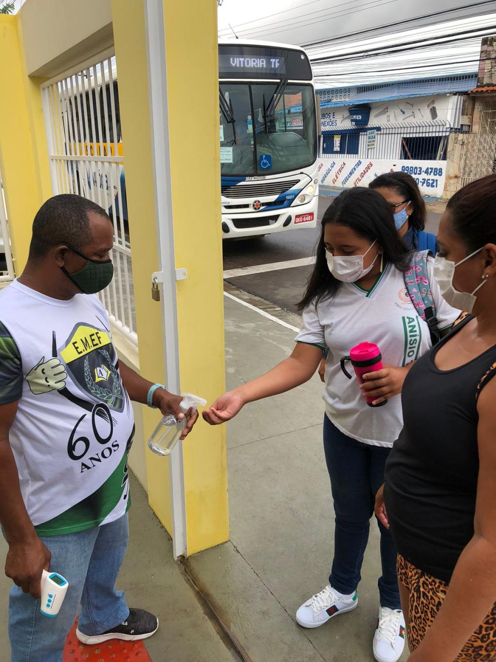 Entre as atividades atribuídas aos grupos que monitoraram as escolas, estava o apoio na recepção dos estudantes, na condução a espaços internos da escola, na distribuição da alimentação escolar e no encaminhamento com maior rapidez das demandas apresentadas pelas escolas aos setores responsáveis da Secretaria.