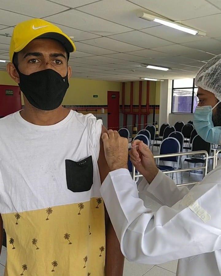Já no ponto montado na Uninassau, acompanhada da mãe, Nara Michelle Melo Lima, a adolescente Camilla Nayanne, 12 anos, recebeu sua primeira dose.