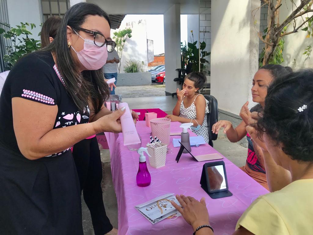Neste mês, mais do que receber informações é necessário refletir sobre elas, afinal, os danos causados pela falta de prevenção e busca tardia de tratamento são grandes. As usuárias assistiram palestra com a nutricionista da Associação dos Amigos da Oncologia (AMO) e depois aprenderam sobre o autocuidado da beleza.