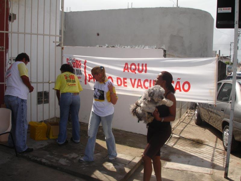 Prossegue até o final da tarde de hoje a Campanha de Vacinação Anti-rábica em Aracaju. Cães e gatos acima de dois meses de vida devem ser vacinados contra Raiva. Das 8h às 17h, cerca de 450 profissionais, entre vacinadores, supervisores, agentes e motoristas, envolvidos na campanha deste ano, estarão atuando em 77 postos de vacinação, distribuídos por toda capital. A meta da Secretaria Municipal de Saúde (SMS) é de vacinar aproximadamente 60 mil animais. Apenas na praça do Siqueira Campos, que é um dos postos mais movimentados, a estimativa é de vacinar uma média de 1.500 animais nos dois dias de campanha. Além da praça Dom José Thomas, a comunidade do bairro Siqueira Campos também pode vacinar seus cães e gatos num outro ponto localizado no prédio do Samu. A vacina é importante, não deixe de vacinar seu animal. A Raiva é uma doença que afeta cães e gatos, sendo transmitida no contato entre eles, com a possibilidade de transmissão para o homem. O agente de saúde Gean Carlos ressalta que a vacina não tem contra indicação. Deve-se ter um cuidado maior apenas com as fêmeas prenhas, pois elas podem ficar agitadas, lembra.