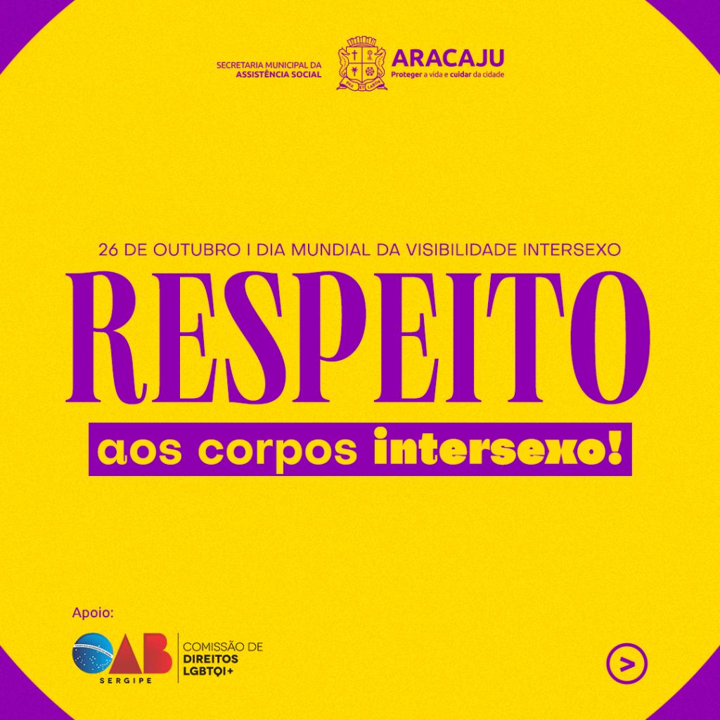 Dia Mundial da Visibilidade Intersexo, o 26 de outubro representa um marco da luta pelo fim da invisibilidade de pessoas intersexuais. Preocupada com o acesso dessa população às políticas públicas nas esferas municipais e federais, a Prefeitura de Aracaju atua a partir da Assessoria LGBTQIAP+, braço da Diretoria de Direitos Humanos (DDH) da Secretaria Municipal da Assistência Social que oferece atendimento especializado e voltado à garantia de direitos.