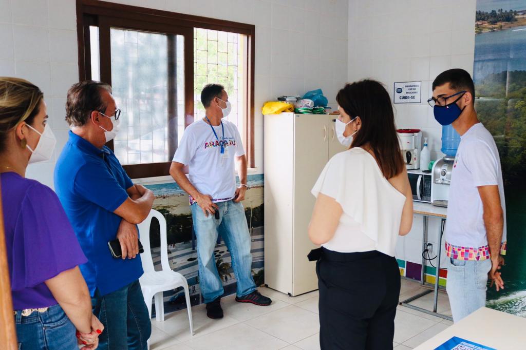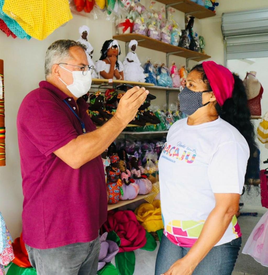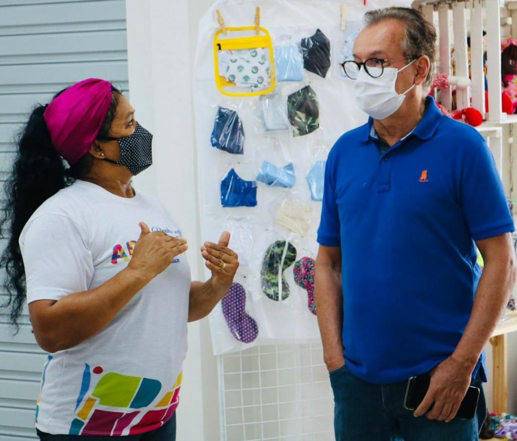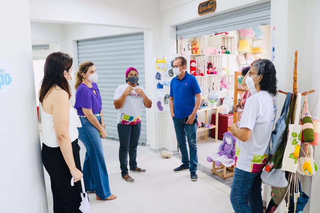 A visita seguinte foi no Centro de Artesanato Chica Chaves, na Orla do Bairro Industrial. Representando as permissionárias dos boxes de vendas de produtos no local, a artesã Denise Santana recebeu o secretário e fez uma apresentação ao coletivo de artesãs e o trabalho que elas desenvolvem.