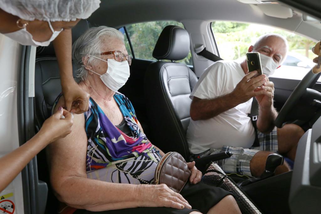 A aposentada Aldeci Siqueira de Araújo, de 94 anos, fez questão de se dirigir, na companhia do filho, ao drive-thru montado no parque da Sementeira para tomar a dose de reforço. "Estou mais aliviada. É mais uma segurança para continuar a luta e que tudo passe logo", sintetizou.
