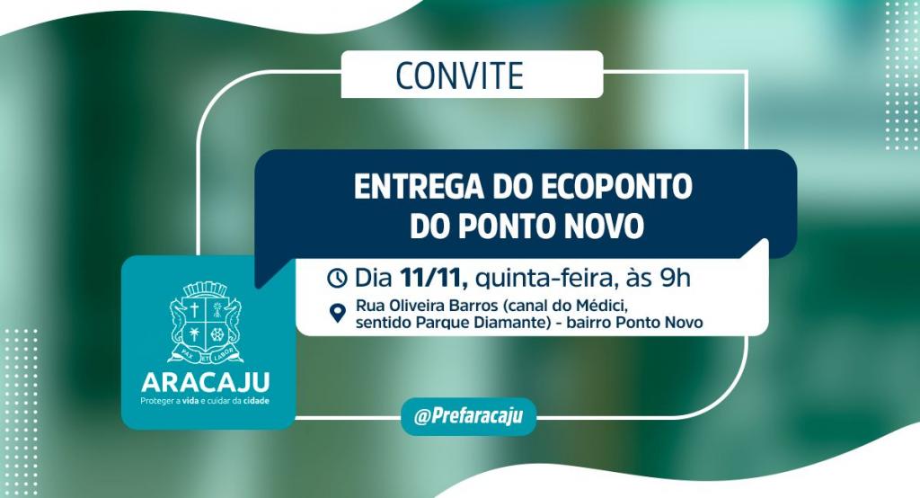 A Prefeitura de Aracaju convida a população para a inauguração da Estação de Entrega Voluntária de Resíduos Sólidos (Ecoponto) do bairro Ponto Novo, que será realizada nesta quinta-feira, dia 11, às 9h.