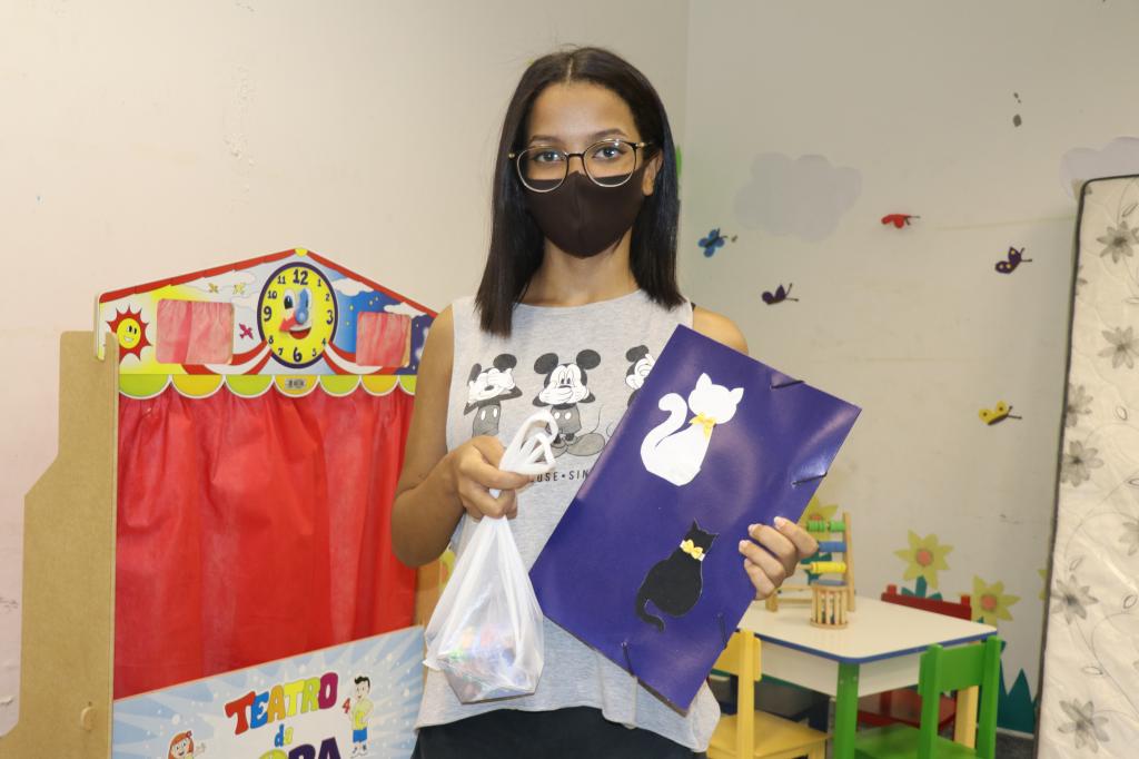 A usuária do SCFV Safira Dayana está no Cras há cerca de quatro anos. Para ela, não foi fácil o período em que esteve afastada das atividades presenciais. “Foi muito difícil porque eu amo o Cras. Gosto muito daqui, das atividades. Matava um pouco da saudade quando as meninas iam lá em casa para me entregar as atividades do mês. Estou feliz porque está voltando aos poucos. Estou reencontrando meus amigos e professores”, disse.