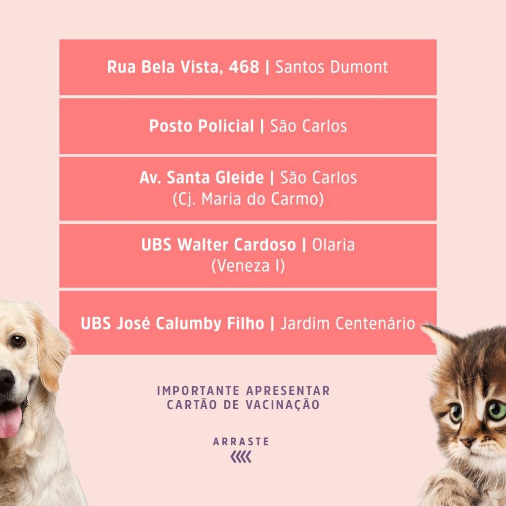 Para ter acesso ao serviço, basta apresentar o cartão de vacina do animal, se tiver. São contemplados na campanha caninos e felinos com idades a partir de três meses de vida.
