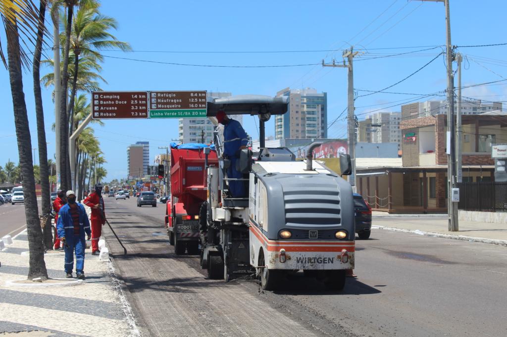 A população que transita pela Orla da Atalaia, principal cartão-postal da cidade, já consegue perceber as melhorias proporcionadas pela revitalização da malha viária da avenida Santos Dumont. Com o avanço da obrao, o pavimento desgastado dá lugar a uma nova camada de asfalto que torna mais seguro e cômodo o fluxo no local.