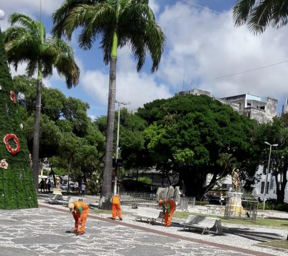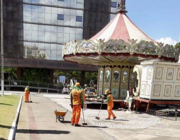 A Prefeitura de Aracaju prepara a capital para o período natalino. Assim, no decorrer desta semana, por meio da Empresa Municipal de Serviços Urbanos (Emsurb), tem reforçado as ações de limpeza e manutenção dos espaços públicos, principalmente na região central da cidade, onde, a partir de sábado, 20, ocorre o acendimento das luzes do Natal Iluminado 2021, projeto realizado pela Federação do Comércio de Bens, Serviços e Turismo de Sergipe (Fecomércio/SE) em parceria com o Município.