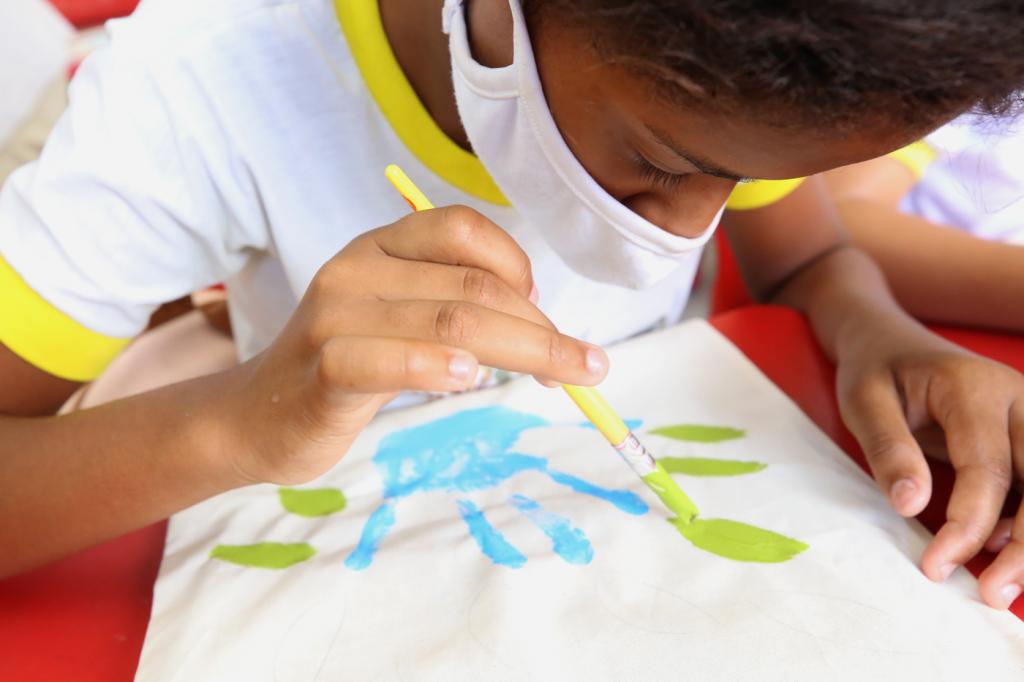 Quem participou da atividade foi o aluno Kleidson Sulivan Santos de Jesus, de 11 anos. "Eu sempre adorei pintar e estou gostando muito da atividade. Desenhei uma árvore na sacola, utilizando as mãos", contou o garoto.