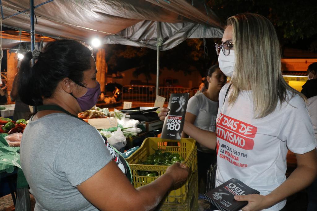“Durante os 21 Dias de Ativismo, cumpriremos uma agenda intensa com diversas sensibilizações em empresas privadas, poder público e toda a sociedade. Viemos até a feira por ser um espaço de grande circulação de pessoas fazendo a entrega de panfletos, a colocação da pulseira da campanha ‘Laço Branco’ pela Mobilização dos Homens pelo Fim da Violência Contra as Mulheres, dialogando com a população sobre os nossos serviços nas áreas de assistência social, saúde e segurança. Esperamos engajar os aracajuanos para denunciarem casos e tirarmos as mulheres da situação de violência”, destacou.