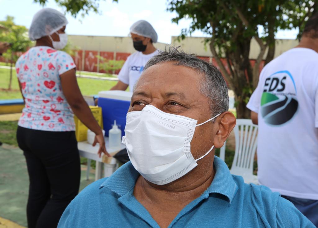 O aposentado Givaldo dos Santos, 63 anos, que mora do Santos Dumont, aproveitou a passagem do carro da vacina para tomar sua dose de reforço, e gostou da forma como o projeto está sendo desenvolvido pela Prefeitura, o que lhe garantiu mais praticidade.