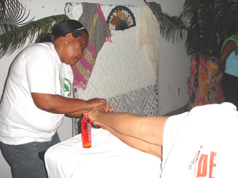 As gestantes atendidas pela Unidade de Saúde da Família Edézio Vieira de Melo foram presenteadas na tarde de hoje com a terapia do toque. A sala de reunião da unidade foi transformada em espaço para relaxamento, e num ambiente totalmente característico, as futuras mamães participaram de uma sessão de massoterapia. A iniciativa, que teve como responsável uma das equipes do Programa Saúde da Família da unidade, faz parte das atividades realizadas com o grupo de gestantes e demonstra a preocupação dos profissionais de saúde da Prefeitura de Aracaju em ir além do atendimento feito nos consultórios. “Mensalmente nós promovemos reuniões com o grupo para explicar todas as questões relacionadas ao período de gestação e ensinar os procedimentos a serem tomados após o nascimento da criança”, relata a enfermeira da equipe Tânia Ferreira. "Além da parte teórica, são feitas atividades práticas sempre voltadas para a saúde e bem-estar das gestantes", garante. Segundo Tânia, essa é a primeira vez que a terapia do toque é realizada com as grávidas. “Nós já havíamos feito com o grupo de idosos e agora achamos interessante promover uma sessão entre as gestantes”. Para a atividade, foram convidadas quatro massoterapeutas, que também atuam como profissionais da Secretaria Municipal de Saúde (SMS). Através de toques nas diferentes regiões do corpo e com o auxílio de óleos terapêuticos, além de um fundo musical relaxante, as futuras mamães puderam absorver toda paz, harmonia e saúde agregada ao ambiente e transmitir para seus bebês. “Para mim, é um privilégio ter esse benefício no lugar onde recebo atendimento médico”, ressalta Maria Damiana, grávida de três meses.