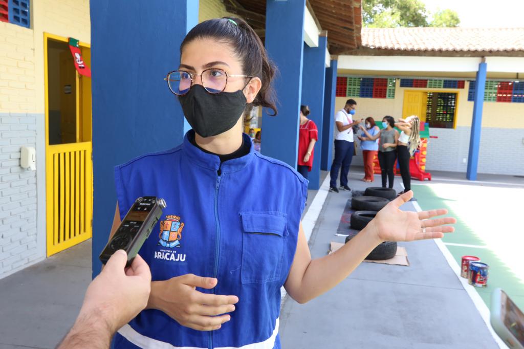 "Essa oficina é de fabricação de puffs com pneus reciclados. É mais uma ação do Município de Aracaju, junto às comunidades. É um trabalho de educação ambiental e patrimonial de forma contínua. Já foram realizadas diferentes atividades aqui na escola, como teatro, atividades lúdicas, dinâmicas, implantação de uma horta, sempre com a sensibilização das crianças quanto à conservação da natureza, a importância da arborização. Hoje estamos encerrando a primeira etapa deste trabalho. A fabricação desses puffs ajuda a sensibilizar esses guardiões da natureza para a problemática dos resíduos sólidos", afirmou Heloísa Taís.