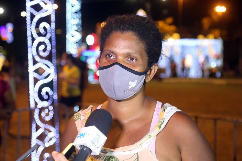 A usuária Joicecleia Barreto, do abrigo emergencial instalado na Escola Municipal de Ensino Fundamental (Emef) Freitas Brandão, situado no bairro Suíssa, estava acompanhada de sua filha e aprovou a noite especial proporcionada pela Prefeitura de Aracaju.