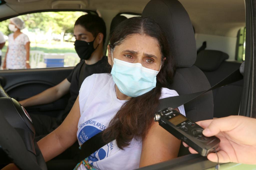 Ainda no drive, a aposentada Maria Adilsa Santos Moura, 61, acompanhou seu esposo, Andelvan Moura Santos, 60, para concluir seu esquema vacinal. "A vacina é imprescindível em virtude dessa situação que estamos passando. Se não tomar, é pior. Acho muito importante que todo mundo venha tomar, principalmente a dose de reforço. Se a gente não recorrer à vacina, não tem como", avaliou.