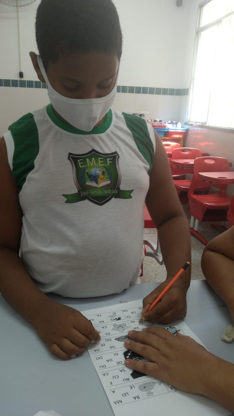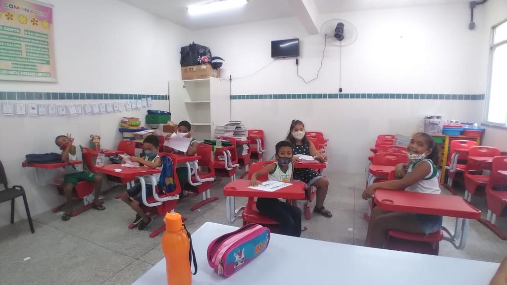 Uma destas unidades é a Escola Municipal de Ensino Fundamental (Emef) José Airton de Andrade. Nesta unidade, que fica no bairro Jabotiana, 31 alunos estão passando pelo reforço escolar presencial com o apoio de duas professoras.