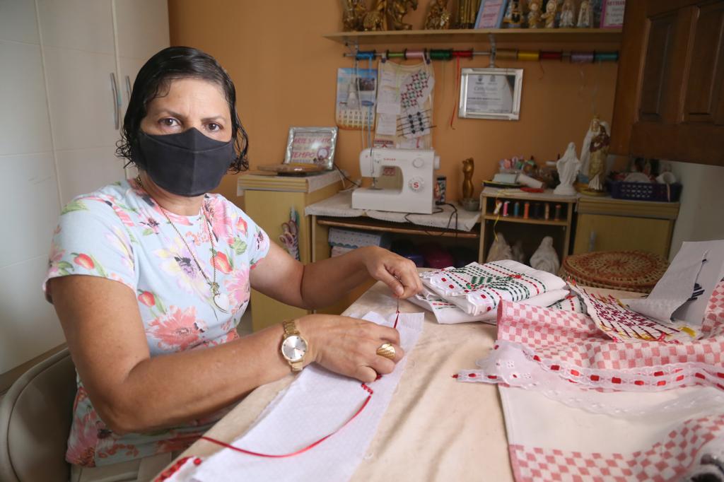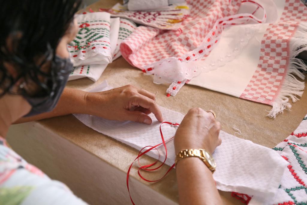 “Uma dica que dou para pessoas que estão querendo ou começando no artesanato é que aproveitem todas as oportunidades que surgirem. A Fundat dá às pessoas que querem iniciar uma renda, oportunidades maravilhosas. Eu dei esse curso de Vagonite na Fundação e não tem dinheiro que pague o depoimento que uma aluna, que uma senhorinha fez pra mim. Ela disse que no primeiro dia que a gente deu curso antes da pandemia, o irmão dela havia falecido, Por causa disso, ela entrou em depressão, mas graças ao bordado, a aluna conseguiu vencer o problema. Isso não tem dinheiro que pague pra mim, sabe? É muito satisfatório”, relata a artesã.