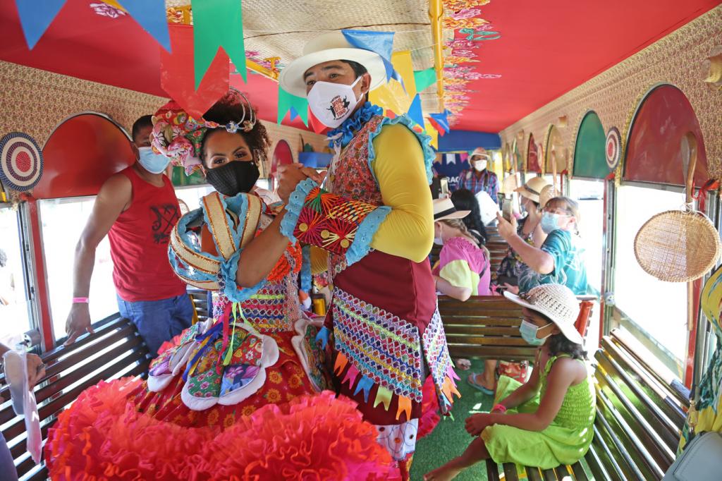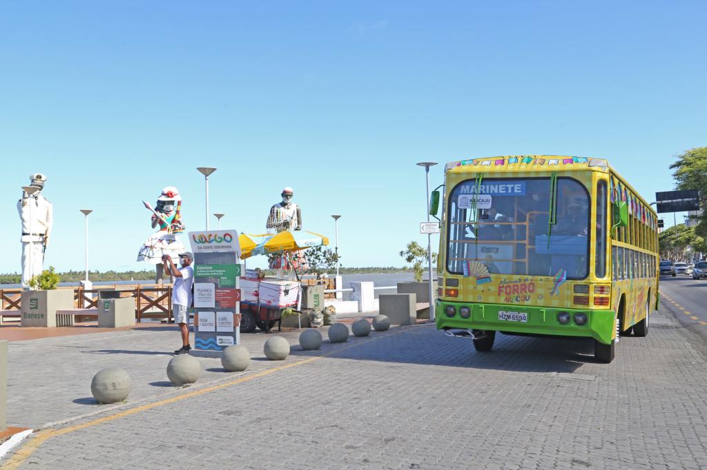 De longe, até pode parecer um ônibus comum rodando pela cidade, mas basta chegar um pouco mais perto e a surpresa logo aparece. As cores vivas e chamativas, as figuras que estampam a parte externa do veículo, bem como os enfeites internos, remetem a uma das maiores tradições nordestinas, o São João. É assim que a Marinete do Forró desfila pela capital sergipana, animada por um trio pé de serra e um casal de dançarinos devidamente paramentados com trajes juninos.
