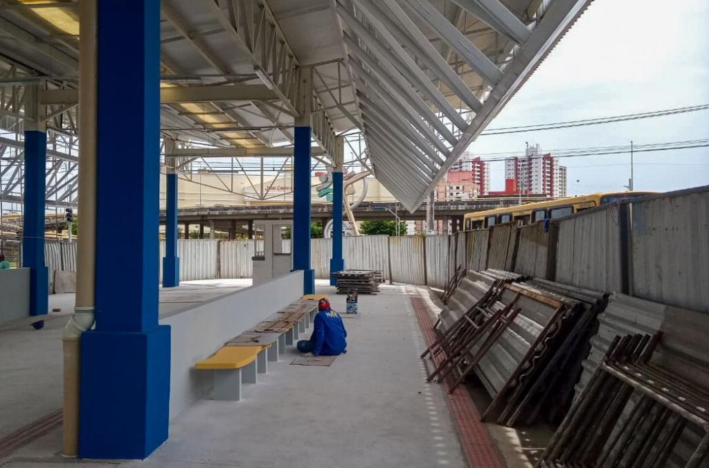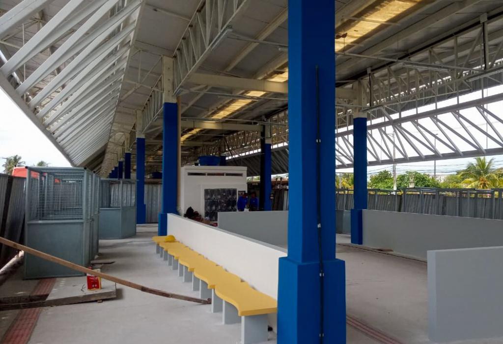 No momento, a reforma está focada na área interna do terminal, finalizando a instalação completa dos boxes comerciais e concluindo a construção dos banheiros e da nova guarita, assim como a pintura.