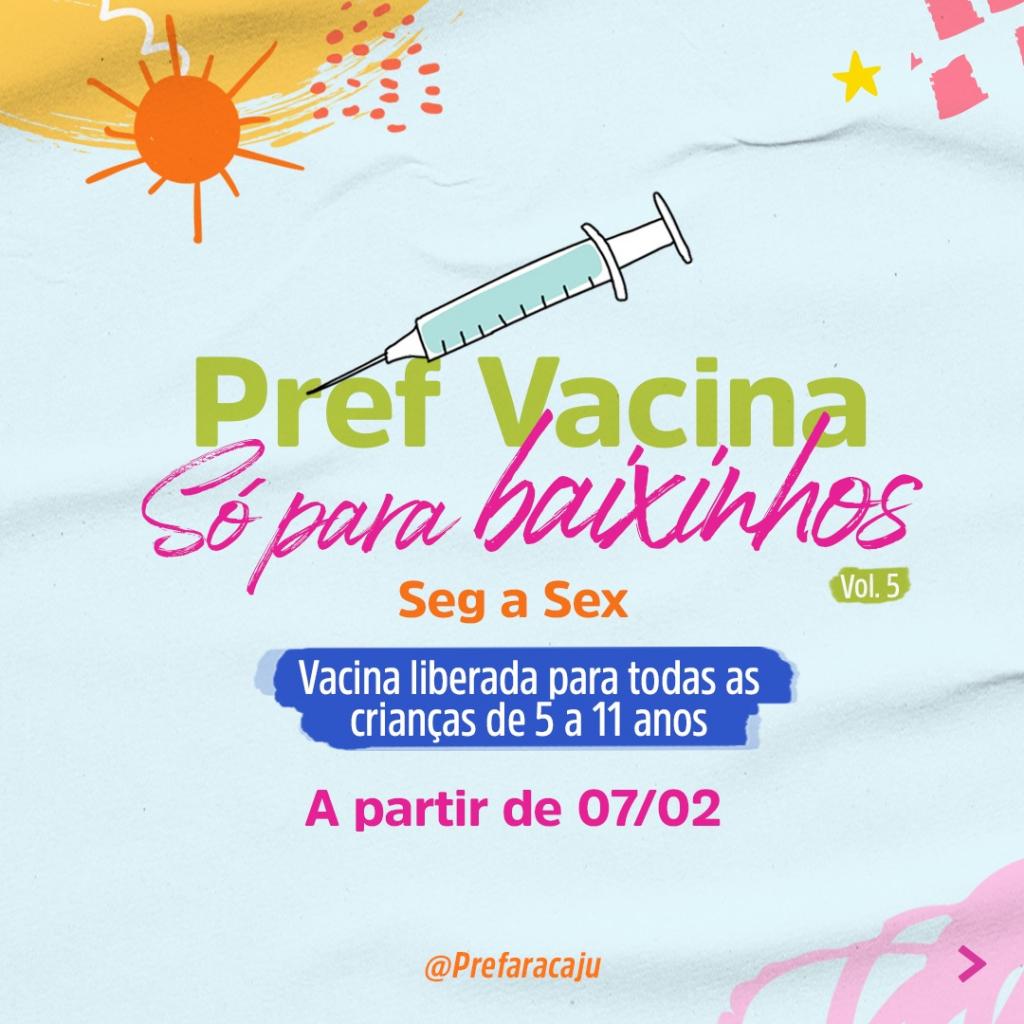 A Prefeitura de Aracaju, por meio da Secretaria Municipal da Saúde (SMS), dará continuidade nesta segunda-feira, 7, à vacinação das crianças de 5 a 11 anos, sem comorbidades, contra a covid-19, e também as crianças, nesta mesma faixa etária, com comorbidades.