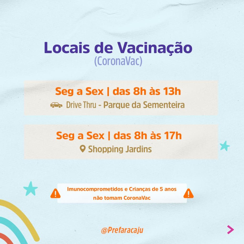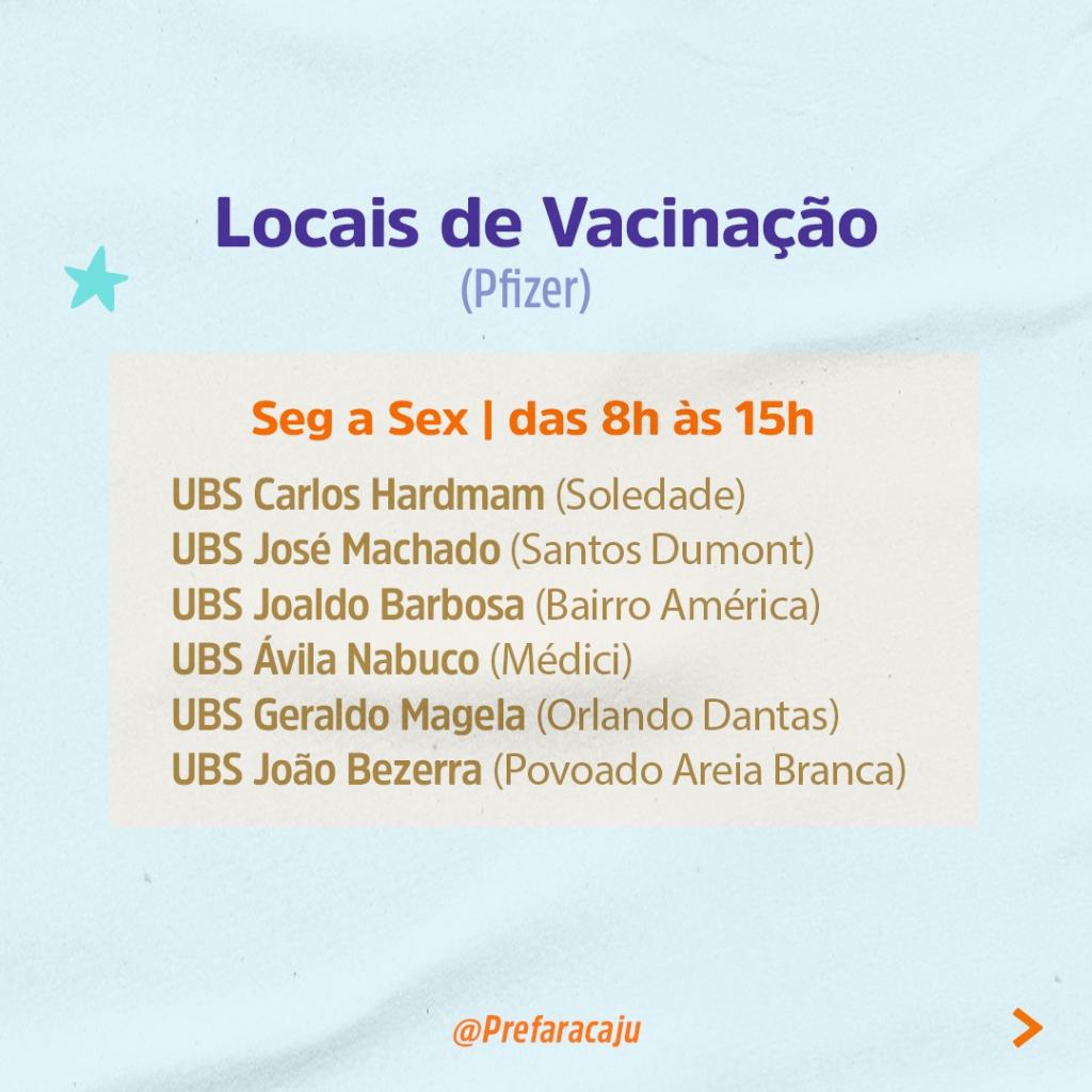 Já as unidades com CoronaVac para crianças são: Santa Terezinha (Robalo); Celso Daniel (Santa Maria); Edézio Vieira (Siqueira Campos); José Calumby (Bugio); Carlos Fernandes (Lamarão) e Amélia Leite (Suíssa). Nas 12 UBSs, a vacinação ocorre das 8h às 15h. Lembrando que crianças de 5 anos e imunucomprometidas não tomam CoronaVac