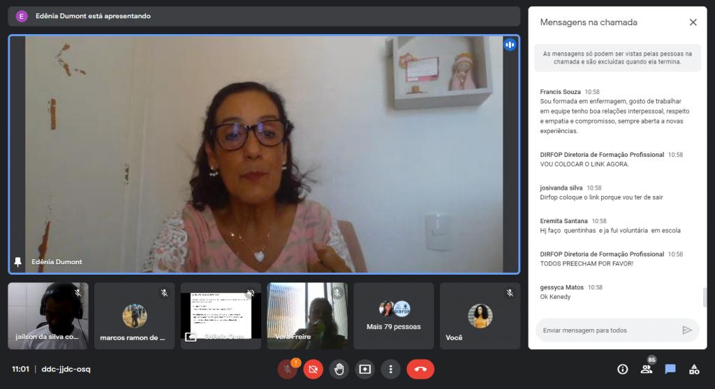 “Durante a oficina, busquei inicialmente trazer uma dinâmica para descontrair e deixar os alunos mais à vontade. Falei sobre a importância de como se portar nos processos seletivos online e presencial. Além disso, falei sobre como criar um currículo atrativo e que se destaque para o recrutador”, explica Edênia.