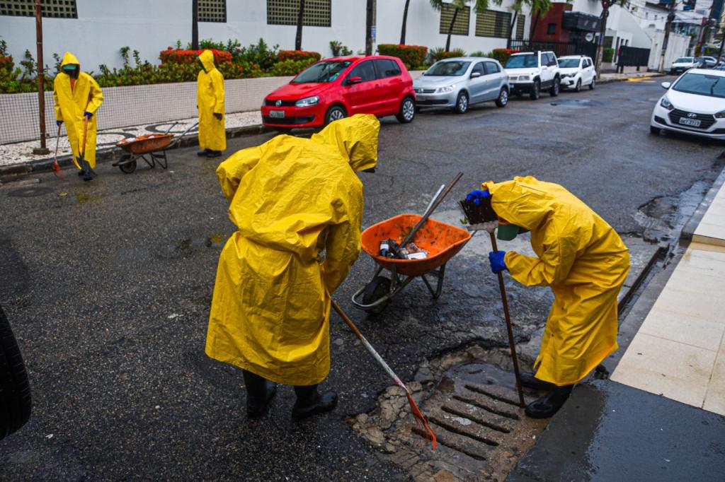 Neste momento, equipes da Emurb realizam a desobstrução de drenagem e limpeza de bocas-de-lobo na Praça da Imprensa, na rua Euclides Paes Mendonça, avenidas Francisco Porto, Beira Mar (Farolândia), Coelho e Campos com Dr. Carlos Firpo (em frente ao restaurante Padre Pedro) e Simeão Sobral.