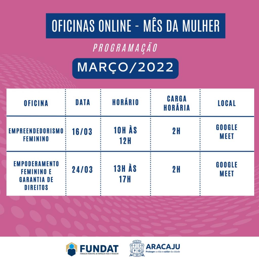 Para a capacitação das mulheres, a Fundat também, em alusão aos Dia Internacional da Mulher, promoverá duas oficinas online, sendo uma voltada ao empreendedorismo e outra a direitos e empoderamento da mulher.