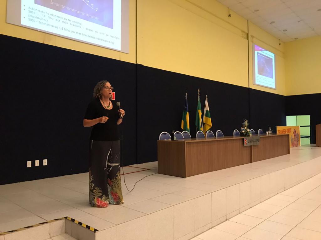 Palestrante, a enfermeira da rede municipal Cristiani Ludmila abordou os direitos legais e políticos, tema que permeia todo um cuidado, tanto para homens, quanto para as mulheres, independente de faixa etária ou orientação sexual, porque são direitos assegurados internacionalmente.