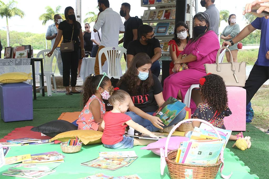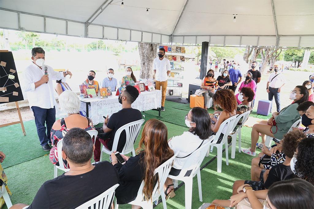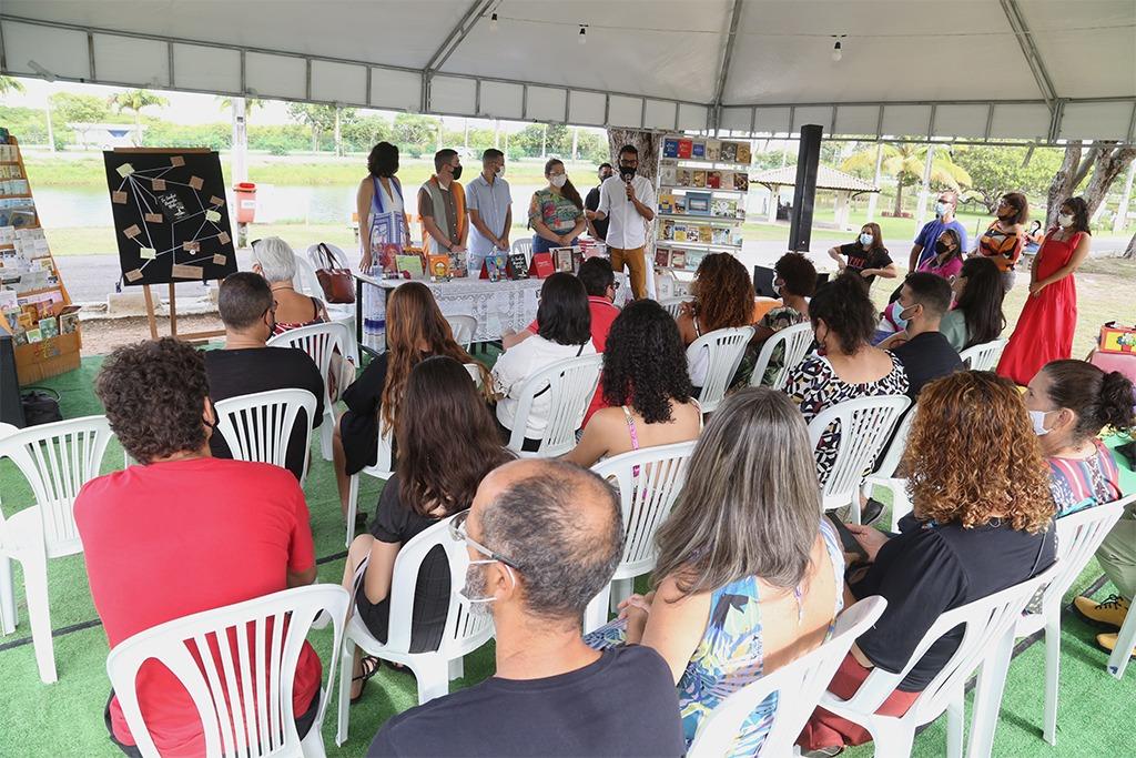 O lançamento das obras selecionadas via edital da Lei Aldir Blanc, lançadas pela EditorAju, teve início às 14h, com os autores recebendo os visitantes e dialogando sobre os projetos.