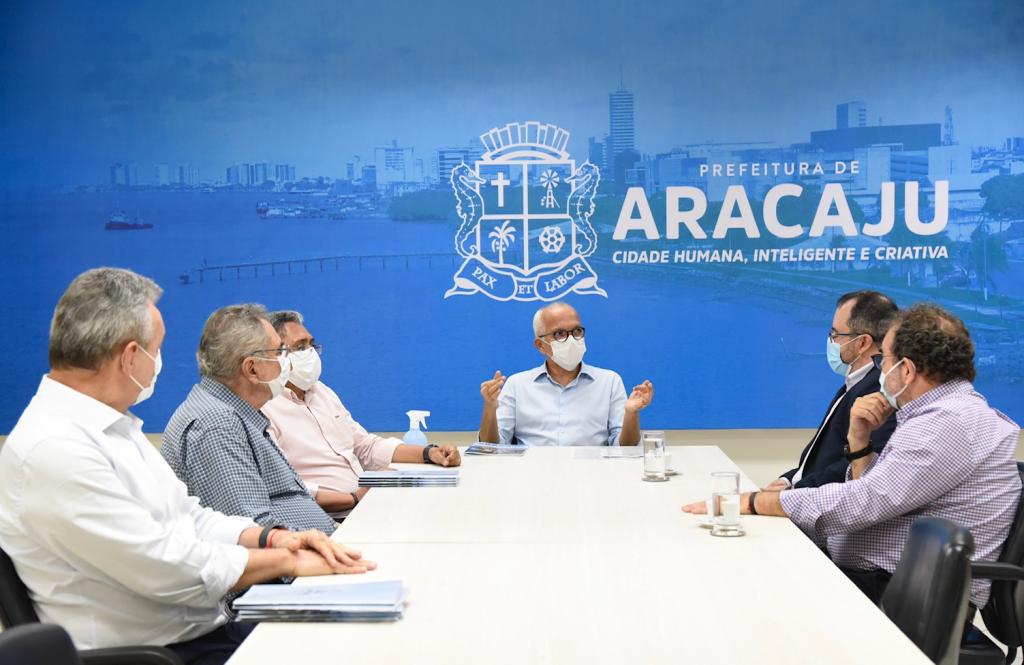 O prefeito Edvaldo Nogueira se reuniu, na tarde desta segunda-feira, 21, com representantes do Novo Banco do Desenvolvimento (NBD), instituição financeira com a qual a administração municipal está em tratativas para financiar o programa "Aracaju Cidade do Futuro", que prevê investimentos de 105 milhões de dólares (mais de 500 milhões de reais) em obras estruturantes. O NBD é um banco de desenvolvimento multilateral, operado pelos países do BRICS (Brasil, Rússia, Índia, China e África do Sul).