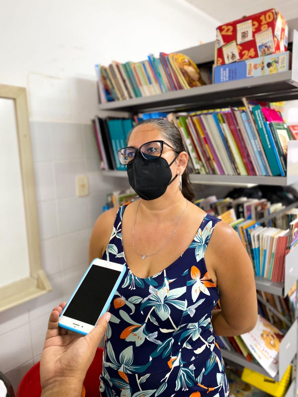 Iadrely Souza de Oliveira, professora da Sala de Recursos Multifuncionais da Emei Nunes Mendonça, conta que costuma usar jogos e brincadeiras no processo de aprendizagem dos seus alunos, com o objetivo de desenvolver suas habilidades.