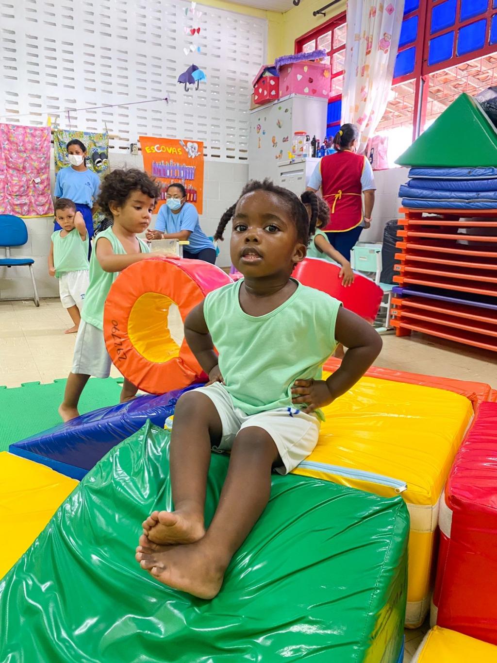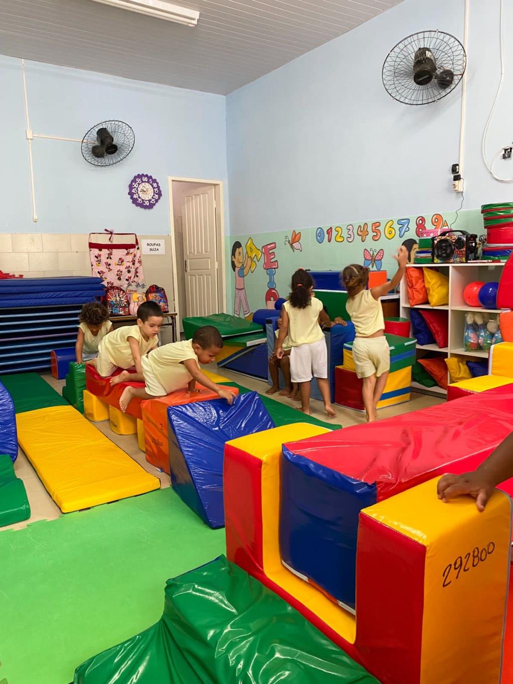 Todas as 46 unidades que ofertam Educação Infantil na rede municipal de ensino possuem parquinhos espumados, além de bonecas, carrinhos, jogos educativos e muitos outros brinquedos que contemplam necessidades de desenvolvimento da criança.