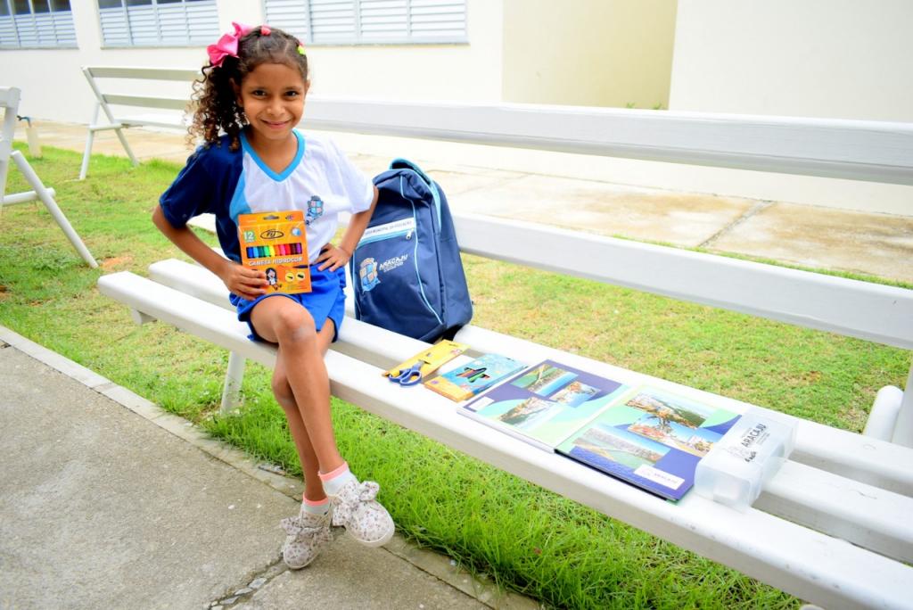 "Este foi um pedido de Natal que chegou e deixou todos na escola animados. Vem muitas coisas dentro da mochila, tem cadernos, lápis de cor, tesoura, borrachas, lapiseiras. Achei muito bom", revela Daislany Victória, do 4º ano.