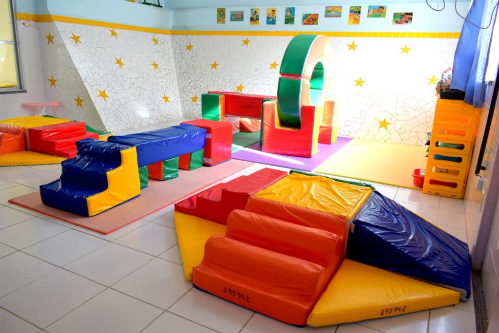 Assim como nas demais escolas, os parquinhos espumados possibilitam mais conforto, segurança e estímulo aos pequenos estudantes da creche da Escola Municipal de Educação Infantil (Emei) Dr. José Fernando Guedes, no Bairro América. A diretora da unidade de ensino, Kátia Siene, explica que este material e demais brinquedos presentes no kit ajudam a desenvolver diversas habilidades.