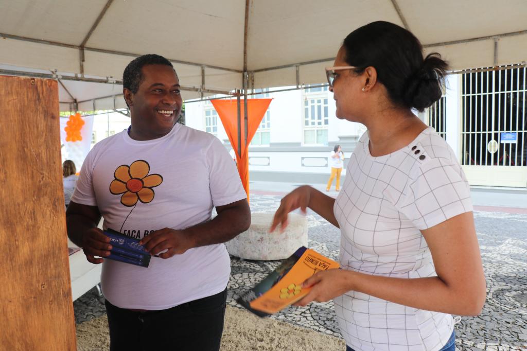 “Escolhemos a Praça Fausto Cardoso por ser um local onde transita homens, mulheres, estudantes, famílias, crianças e adolescentes para ressaltar que prestem atenção aos sinais, para que não deixem nossas crianças vulneráveis ao risco”, conta Álvaro.