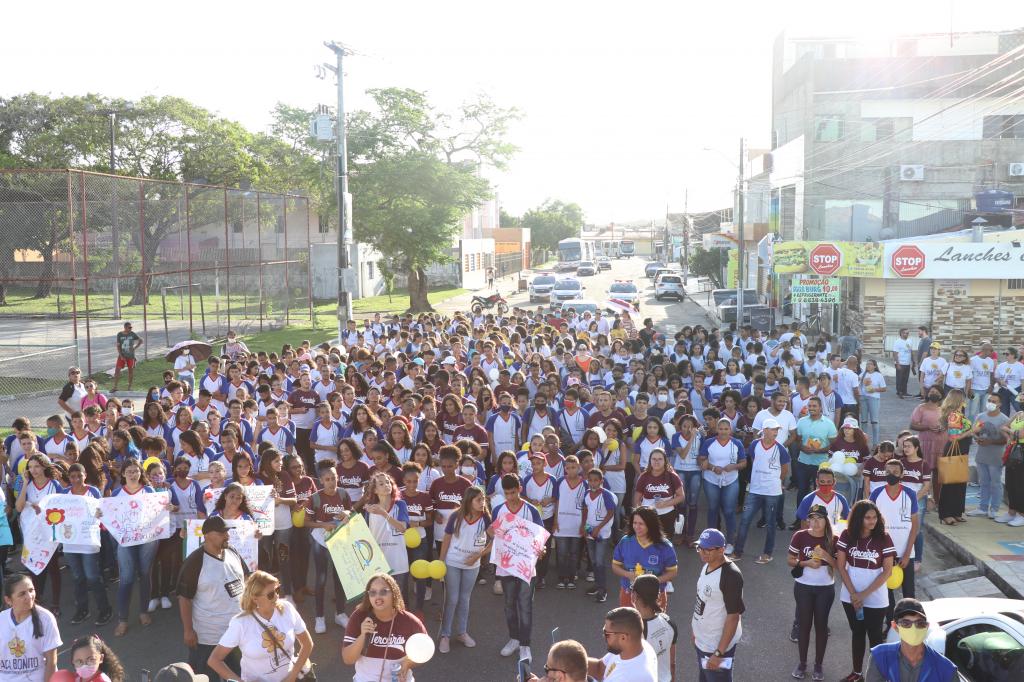 A diretora da Escola Estadual José de Alencar Cardoso, Laydjane Balbino, reuniu as turmas do 9º ano para participarem da caminhada. A equipe pedagógica da unidade de ensino já realiza atividades sobre o tema e não hesitou em participar por mais um ano.