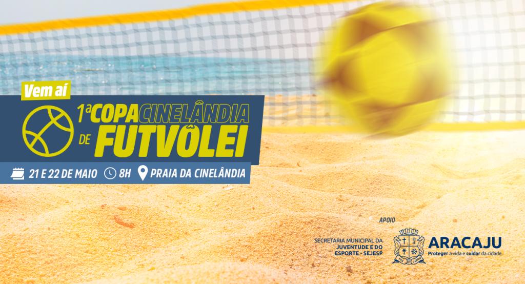 A capital sergipana recebe, no próximo final de semana, 21 e 22 de maio, a 1ª Copa Cinelândia de Futevôlei, realizada pela Federação Sergipana de Futevôlei (FSF), com apoio da Prefeitura de Aracaju, por meio da Secretaria Municipal da Juventude e do Esporte (Sejesp), na praia que dá nome a competição. São 96 atletas inscritos, divididos em quatro categorias. O evento é aberto ao público, com entrada gratuita.