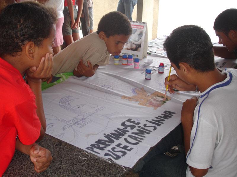A sociedade civil já está sendo mobilizada para o Dia Mundial da Luta contra a Aids no próximo 1º de dezembro. Hoje à tarde foi a vez dos alunos da Escola Municipal Laonte Gama, no bairro Santa Maria, que tiveram uma recreação totalmente direcionada para a educação sexual através da confecção de painéis pintados por eles com tema voltado para as doenças sexualmente transmissíveis. Este evento faz parte dos preparativos do Dia Mundial da Luta contra Aids que a Secretaria Municipal de Saúde (SMS) está organizando. Todos os painéis que foram confeccionados pelos alunos irão compor a grande caminhada, ato que já faz parte da mobilização da cidade, com saída da Praça da Bandeira e chegada à Praça Fausto Cardoso, acompanhada de show musical. Todos os estudantes estavam empolgados com a oportunidade de expressarem suas opiniões através de pinturas que serão mostradas ao público. Além da gente estar se divertindo, estamos aprendendo muitas coisas novas sobre essas doenças, disse Eduardo do Santos, aluno da escola. O tema da campanha desse ano é Aids e Racismo: O Brasil tem que viver sem preconceito. Na escolha do tema, o Programa Nacional de DST e Aids, do Ministério da Saúde, partiu da perspectiva de que a população afro-descendente nunca foi alvo de campanhas de prevenção e ela representa 43% da população brasileira, segundo o Instituto Brasileiro de Geografia Estatística (IBGE). No Brasil, apesar da estabilização da epidemia, os casos vêm aumentando junto a população de baixa renda, onde os negros representam 65% da população.