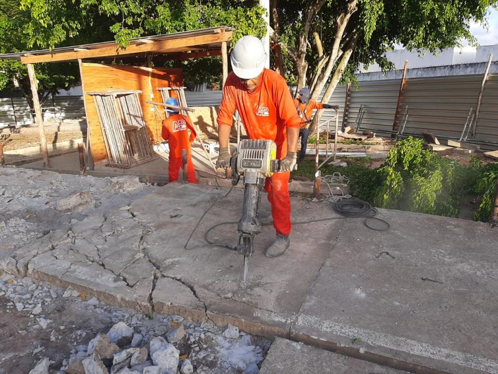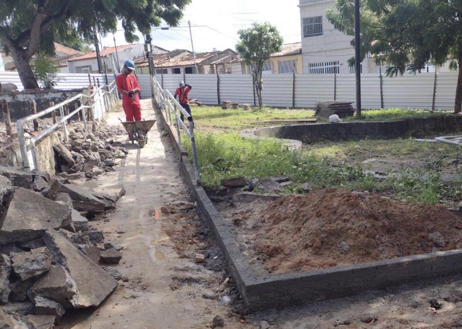 No espaço que está sendo reformado, já foram feitas as demolições, inclusive da quadra esportiva, com remoção de alambrado e pisos. Agora, a obra está concentrada no assentamento de meio-fio e na recuperação de alvenaria de pedra e dos canteiros.