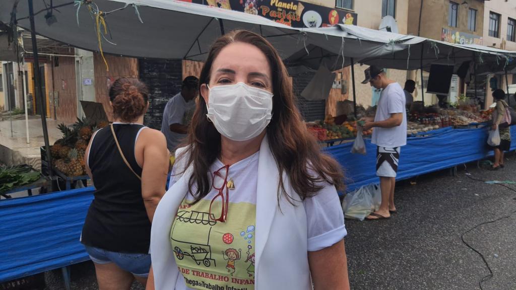 Kelle Cristina Santos Carvalho atua como feirante no Castelo Branco há seis anos. Ela diz que é comum ver os adolescentes chegarem ainda de madrugada para trabalhar na feira livre. “Eu acho muito importante, porque a maioria dos meninos vem pegar frete na feira e não é um trabalho correto, pelo menos com a oportunidade de serem inseridos no adolescente aprendiz eles terão um salário melhor. É uma oportunidade maravilhosa”.