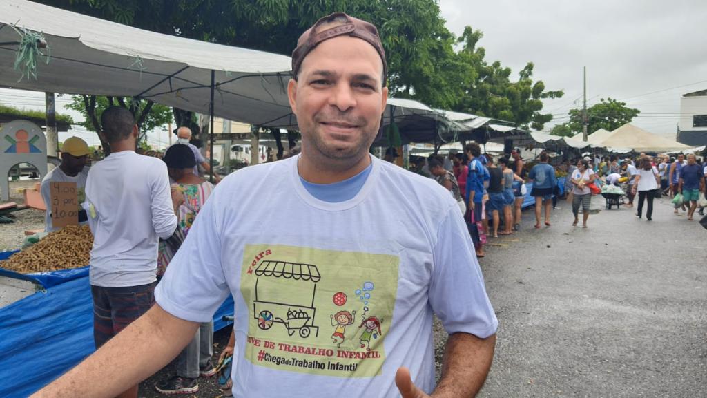 O balconista Antônio de Jesus estava no local fazendo suas compras quando foi abordado pelas equipes. Para ele, a ação é uma excelente iniciativa. “Muitas crianças estão na rua, fazendo carrego ou outros tipos de trabalho, então essa ação é muito importante. É melhor que estejam estudando do que na feira. Eu apoio o projeto, já vesti minha camisa e estou levando uma para o meu filho”, afirma.