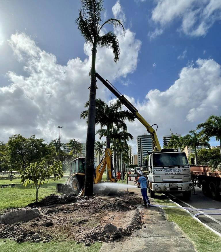 Ainda entre as ações inerentes à preocupação da gestão municipal com o meio ambiente, a Emsurb efetuou, nesta segunda-feira, 6, o transplante de uma Palmeira-imperial. A árvore com cerca de 12 metros de altura, foi doada pelo Museu da Gente Sergipana Governador Marcelo Déda, através do Instituto Banese. “Como essa árvore possui uma estatura elevada, mesmo com a poda constante, a copa estava atingindo a rede elétrica e ocasionando queda de energia na localidade. Assim, fomos acionados para organizar essa operação minuciosa de remoção”, explicou o diretor de Orlas e Parques, José Olino de Castro.