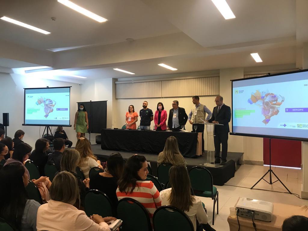 Estavam presentes na mesa de abertura do seminário, a secretária municipal da Saúde, Waneska Barboza, a secretária da Saúde de Sergipe, Mércia Feitoza, o presidente do Conselho de Secretários Municipais de Saúde (Cosems) Enoque Ribeiro e os representantes do Ministério da Saúde, Tiago Rangel e Maycon Oliveira.
