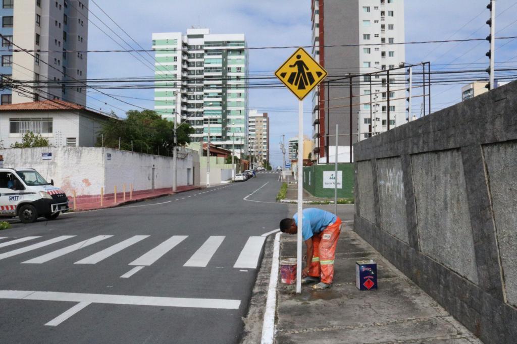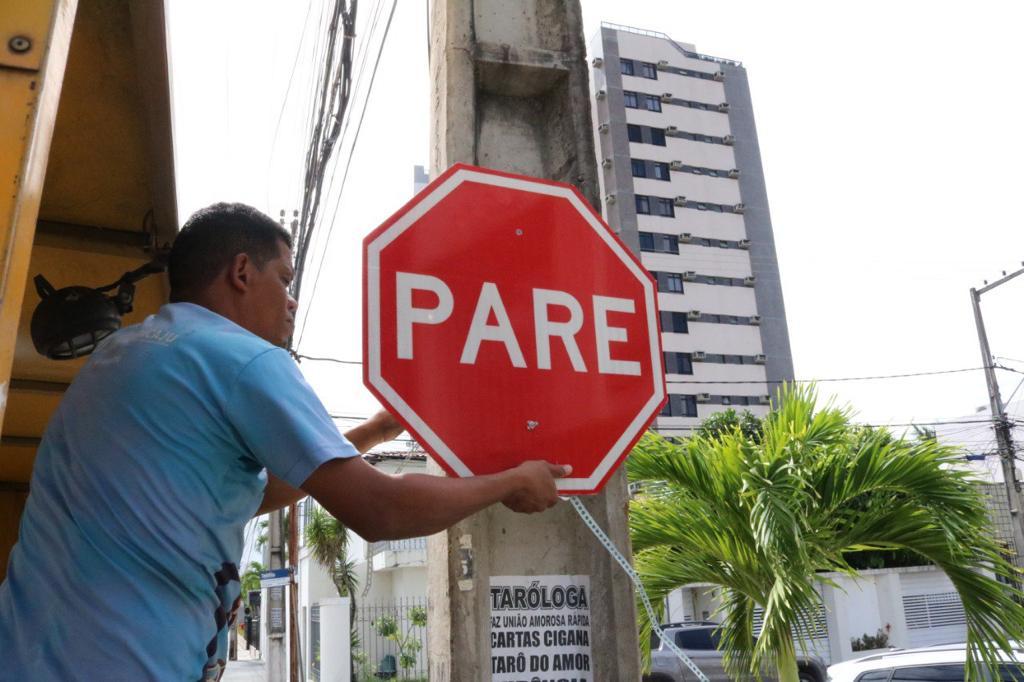 A Prefeitura de Aracaju, por intermédio da Superintendência Municipal de Transportes e Trânsito (SMTT), está repondo as placas de sinalização viária que foram furtadas, alvos de vandalismo ou que estão deterioradas por ação do tempo. Nesta quarta-feira, 15, o trabalho foi feito nos bairros São José, 13 de Julho, Atalaia, Siqueira Campos e Centro.